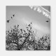 Las aves negras se posan en un árbol mientras algunos de sus miembros toman vuelo. ¡Cuelgue esto donde quiera que necesite la inspiración de la naturaleza hoy!