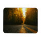 Esta foto muestra una puesta de sol sobre una carretera pavimentada.