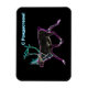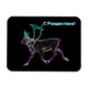 Una renderización brillante, parecida a un neón, de un caribú, también conocido como reno. El texto en cirílico que dice "S Rozhdestvom" (С Р о ж д с sniht - Un saludo de Navidades rusos) aparece en azul y blanco resplandeciente.