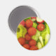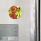 Este imán hermoso presenta una fotografía de una mezcla de ingredientes de ensalada en un colador. La deliciosa foto incluye tomates, rábanos, cebollas de primavera y lechugas.