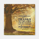 El imán inspirador de las escrituras de otoño y de Acción de Gracias muestra una fotografía de la naturaleza de las vigas de sol brillando en un hermoso árbol con follaje otoñal. Presenta la Biblia Verse Salm 107:1, "Den gracias al SEÑOR, porque Él es bueno; Su amor perdura para siempre".