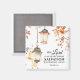 Magnet con escritura de cita inspiradora representa un diseño de acuarela otoñal con hojas de color ocaso que rodean las luces de linterna colgantes. Presenta un salmo motivador de la Biblia Verse 27:1, "El Señor es mi luz y mi salvación: a quién le temeré".