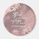 El imán de escritura de cita inspiradora representa un diseño de acuarela floral simple y elegante en tonos rosa, negro y rosa polvoriento. Presenta el Salmo de la Biblia Verse 46:1, "Dios es nuestro Refugio y Fuerza".