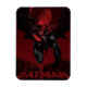 Este poderoso gráfico ilustra a Batman en una posición de acción dinámica, saltando en el fondo de una luna roja y un tormentoso horizonte gótico. El ilustracion está salpicado de tonos rojos y negros, lo que pone de relieve la intensidad y el peligro del momento. Batman es representado en movimiento, luchando con un gancho en la mano, listo para enfrentar los peligros que acechan en la noche. La ciudad que está debajo de él es representada en un detallado estilo de wireframe, sugiriendo su complejidad y la profundidad de los secretos que contiene. Las lluvias caen por toda la escena, lo que aumenta la dramática tensión y la sensación de una batalla en alto riesgo contra el crimen. La obra de arte transmite el implacable impulso de Batman y su papel como héroe oscuro en una ciudad que nunca duerme, capturando su esencia como guardián y protector silencioso de Gotham.