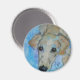 Imán redondo creado a partir de un acrílico original de un cachorro de saludo suave.