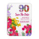 Celebra increíbles 90 años con este elegante imán de Save the Date floral con esquinas redondeadas. Un colorido “90” floral rodeado de flores de acuarela en rosa, púrpura, amarillo y verde crea un diseño alegre y moderno. Un recuerdo práctico para familiares y amigos para mostrar en la nevera hasta el gran día. Totalmente personalizable con tus detalles. ¡Disfruta!