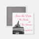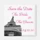 Hágale saber a la gente qué fecha le has fijado a tu boda. El diseño clásico de la Torre Eiffel con letras rosas es una buena manera de hacer saber a la gente qué día te casas. La Torre Eiffel en París Francia es un tema romántico para su boda.