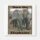 Una elefante matriarca y su familia con las palabras Salven a los Elefantes que lo rodean.