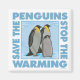 SALVEN A LOS PENGUINOS - DETENGAN EL CALENTAMIENTO. Una familia de pingüinos buscando más hielo - ¿estará ahí? El hielo polar no está a la altura del calentamiento global y el cambio climático. Defensa de la responsabilidad ambiental.