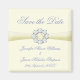 El imán Save the Date de este impresionante y sofisticado caserío personalizado presenta un fondo de marfil con una cinta satinada simulada y una cuchara de color plateado envuelta con diamantes y una perla. El texto de este imán Save the Date Announement está en un hermoso tono azul para coincidir con los diamantes brillantes.