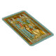 En esta espléndida huella devocional suiza neogótica, se representa a Santa Cecilia de Roma (siglo III) tocando un órgano recto. Su largo pelo quemado se le cuelga y se tambalea sobre sus hombros y sobre su espalda. Lleva puesto un traje de color crema de estilo medieval alineado en verde sobre un hervidor de naranja rojo oscuro. El vestido tiene un collar cuadrado y mangas de campanas. + A la izquierda del impreso hay una maceta de lirio. En el lenguaje religioso de las flores, los lirios significan pureza. A pesar de su promesa privada de virginidad, Santa Cecilia fue obligada a contraer matrimonio arreglado con un pagano llamado valeriano. El matrimonio nunca se consumó. Lo largo y corto de todo esto es que su nuevo marido, habiendo visto una aparición del ángel que protegía la virtud de su esposa, se convirtió al cristianismo y respetó su promesa. + Contra el fondo acuático adornado con puntos dorados y estrellas, dos ángeles se abalanzan sobre San Cecilia. Ataviado de rosa salmón, un ángel sostiene un pergamino desplegado; vestido de verde, el otro ángel toca un órgano portador o de mano. Se dice que el día de su boda, Santa Cecilia "cantó en su corazón al Señor" en lugar de deleitarse; de ahí su patrocinio de músicos (especialmente organistas) y cantantes representados por los dos ángeles. + Toda la escena está encerrada en un marco arquitectónico neogótico y una frontera con coloridos jefes florales. + Epilog: Santa Cecilia, su marido San Valeriano y su cuñado San Tiburcio fueron todos mártires. Pero, ¡esa es una historia para otro día! + Festín: 22 de noviembre + Crédito de la imagen (BNG 02): Imagen antigua neogótica de San Cecilia, publicada originalmente en cromolitografía por Benziger & Co., Einsiedeln, Suiza, de finales del siglo XIX y principios del siglo XX, de la colección privada de ephemera religiosa del diseñador.