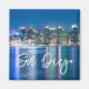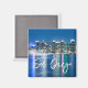 San Diego Magnet: Esta es una fotografía del perfil de San Diego tomada en la noche de octubre de 2020. Las luces de los rascacielos se reflejaban en el agua de la bahía, y la luz de la luna llena que crecía en ese momento llevaba a esos colores azules. Esta foto está disponible en productos que hacen el mejor recuerdo de San Diego para usted o como regalo de vacaciones.