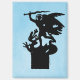Este ilustracion de Richard H. Fay representa la silueta de la estatua/meteorología de San Miguel y del Dragón que se alza sobre las ruinas del castillo de Valkenburg en los Países Bajos.