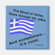Bandera griega ondeando y palabras que dicen, "La sangre de Grecia fluye por mis venas. Y a veces... su ouzo." Divertido para una risa en el Día de Oxi o en cualquier momento.
