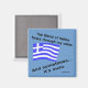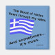 ondeando la bandera griega y las palabras que dicen: "La sangre de Hellas fluye a través de mis venas. Y a veces...es ouzo". Diversión por una risa en el Día de Oxi o en cualquier momento.