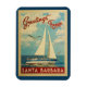 Este diseño náutico vintage de Greetings From Santa Barbara California incluye un barco que navega en el agua con gaviotas y un cielo azul lleno de hermosas nubes blancas.