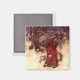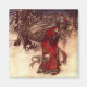 Magnet con el ilustracion de Arthur Rackham, Santa Claus (1907). Un Santa Claus, de cama roja, lleva una bolsa de regalos navideños en un bosque nevado. Los elfos vuelan a su lado. ¡Un regalo jovial para los Navidades!