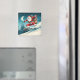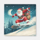 Sumérjase en su entusiasmo con un ilustracion vibrante de Santa Claus entregando regalos en un snowboard. Vestido con su clásico traje rojo, Santa se desliza por una nevada pendiente con un saco de regalos, rodeado de árboles de invierno y alegría festiva. Diseño moderno, atrevido y divertido.