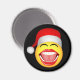 Navidades Santa Face © Sunny Mars Designs. Divertidos Navidades redondos frigorífico o imán frigorífico con una cara graciosa de risa usando un sombrero de Santa.