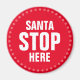 Santa Stop Here rojo y blanco adorable imán lindo decoraciones navideñas. rodeado por una delicada corona de tiernos copos de nieve.