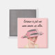 Este imán presenta una imagen vintage de una mujer en un gorra floral rosa, sobre un fondo rosa personalizable. El texto "Sarcasm es sólo un servicio más que ofrecemos" se puede personalizar como se desee.