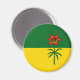 Bandera de Saskatchewan, Canadá. La bandera de Saskatchewan incluye los cojinetes (escudo de armas) en el cuarto superior más próximo al personal, con el emblema floral, el lirio rojo occidental, en la mosca. La mitad verde superior de la bandera representa las tierras forestales de Saskatchewan septentrional, mientras que la mitad inferior de oro simboliza los campos de trigo de pradera del sur.