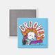 Echa un vistazo a Schroeder tocando en su piano con la palabra "Grooves" en colores retro repetidos arriba.