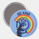 Magnate de amabilidad con un personaje lindo sosteniendo un arco iris y el texto "Be Kind". Porque a veces hay que recordarnos que solo ser un buen humano hace que el mundo sea un poco mejor.