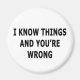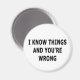 Por el amante del sarcasmo en todos nosotros. Echa un vistazo a este ingenioso diseño de "I Know Things and You are Wrong" sobre ropa y regalos.
