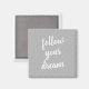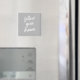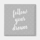 Magnet con cita inspiradora. Patrón de puntos rosados y azules pasteles sobre fondo gris.