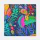 Jardín hawaiano, jungla tropical, loro caribeño, amarillo azul rojo, violeta rosa verde, follaje floral, loro escondido, colores tropicales, Virginia Vivier, arte folclórico vagabundo, diseño aloha, arte indie, decoración moderna de boho, decoración tropical.