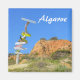 Fotografía de un viejo cartel frente a rocas rojas, tomada en el hermoso Algarve en el sur de Portugal.