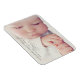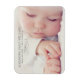 Hermoso anuncio de nacimiento minimalista con imán que presenta el nombre del bebé en elegante letra mayúscula espaciada gris carbón con estadísticas de nacimiento y un delicado floreo de floritura caligráfica en una foto de sangrado completo. Un diseño atemporal y neutral en cuanto al género que funciona perfectamente para cualquier bebé o niña. Todo el texto y el color del texto son totalmente personalizables.