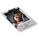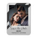 Imán de Guardar la Fecha con su propia foto enmarcada por un diseño gris sencillo con rayas.