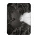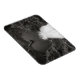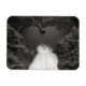 Fotografía en blanco y negro de una piscina en forma de corazón que da a una cascada.