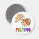 El diseño de la siembra muestra un par de manos cortantes haciendo un erizo de fieltro con la palabra "Felting" debajo en colores arcoiris. ¡Un diseño divertido para los aficionados!