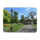 Esta imagen es parte del Jardín Botánico Ballarat en Ballarat, Australia. Los jardines cubren una superficie de 40 hectáreas y en 2007 celebraron su séquicentenario (150 años). En esta imagen, un jardín bien cuidado cuenta con un encantador pabellón rodeado de vibrantes parterres de flores y exuberante vegetación. Un farol clásico domina el paseo pavimentado bajo un cielo azul brillante.