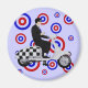 Sesenta verifican mod scooter rider con obras de arte en círculo rojo y azul. Obra de mano y colorido arte gran regalo para cualquier amante de la cultura de los sesenta o modas