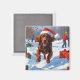 Un bonito Red Setter irlandés recorre alegremente el paisaje nevado, usando un gorra festivo de Navidades rojos. Esta vibrante escena invernal resalta el sedoso abrigo rojo de la raza, el espíritu enérgico y la naturaleza afectuosa mientras se celebra el calor y la magia de la temporada navideña. Un diseño animado y lleno de encanto festivo