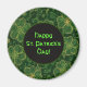 Imán redondo con una imagen de fantásticas rocas de champú recortadas en oro a la deriva sobre verde oscuro. El círculo negro tiene un borde verde y un sentimiento de personalizable. Vea toda la colección de St. Patrick's Day Magnet en los TOUCHES ESPECIALES | Sección de favoritos de partido. Este producto no está asociado ni afiliado al titular del derecho de autor original.