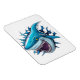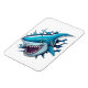 Color Palette: The color palette consists of various shades of blue that represent the skin and scales of the shark, with splashes of lighter and darker blue for highlights and shadows. There are also purple tones in the mouth and parts of the shark's snout, which could suggest a texture similar to leather or cartilage.