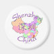 Shenzen de la provincia de Guangdong en un colorido mapa de China incluye los símbolos chinos para 'Shenzhen' y su ubicación está marcada en el mapa con un corazón y una bandera. ¡Un hermoso y único regalo de adopción de China! ¡personalizar con un nombre o foto también! Diseñado por Hendrika de RedThreadMaps.com
