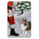 La encantadora Sheltie le da oportunidades a Santa en el bosque.