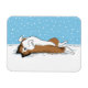 Imán de vacaciones de Sheltie. Dibujo de un perro pastor Shetland rodando en la nieve con copos de nieve cayendo. Este lindo imán de heladera Sheltie hace que un Navidad divertido se engaña en las existencias. Visite el Doodle World de Jenn para ver más productos con este diseño de perro feliz y muchos regalos de Navidad de raza de perros.