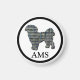 Shih Tzu lindo patrón de silueta de perro amarillo y azul cuadrícula abstracta en círculo negro. Personaliza este hermoso regalo de amante de mascotas con tus tres iniciales bajo la forma de perro. Gran regalo para el Día del Padre para cualquier amante de las mascotas de papá perro.