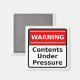 Advertencia - Contenido bajo presión - imán cuadrado con diseño rojo, blanco y negro.