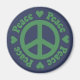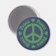 Imán de paz - letras verdes descoloridas con signos de paz y corazones.