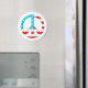 Este diseño presenta el símbolo de la paz y los colores de la bandera estadounidense