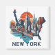 Hermoso imán en Nueva York que presenta el horizonte y la silueta de la ciudad americana con rascacielos y edificios. Excelente recuerdo de viaje y regalo de turismo.