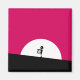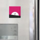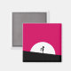 Un imán con un tipo zombie genial. Combinación de colores vivos rosa y negro en negrita. Una silueta zombie con brazos extendidos en la caza de cerebros. Una gran luna blanca se ilumina por detrás.